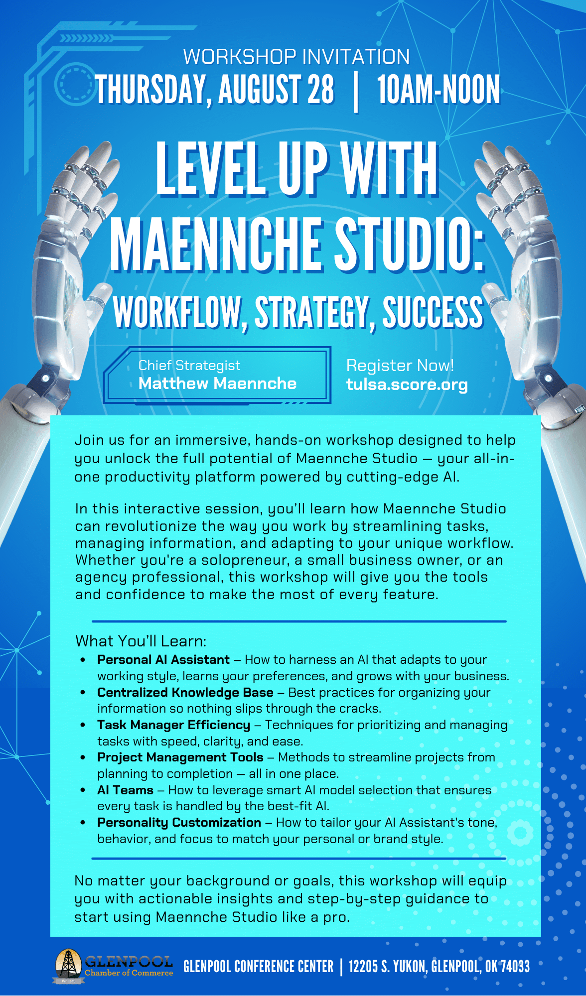 Location: Glenpool Conference Center – 12205 S Yukon Ave, Glenpool, OK 74033